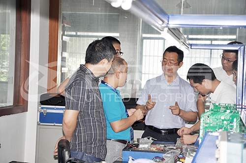 公司對黃教授的到來表示熱烈歡迎,并安排了細致的接待工作。在公司領導及各部門主要負責人的陪同下,黃教授參觀考察了公司的產(chǎn)品測試中心、技術部和生產(chǎn)車間等,并在會議室進行了親切友好的洽談。
